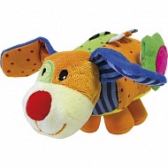 - развивающая игрушка с виброэлементом и музыкальным модулем. При оттягивании хвостика собачка говорит . Игрушка обеспечивает комплексное развитие малыша: яркие цвета способствуют развитию зрения, голос собачки и шуршалки - слуха, зеркальце способствует ускорению социализации ребёнка, различные фактуры и детали развивают мелкую моторику и тактильное восприятие.