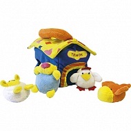 Развивающая игрушка - это мягкий домик для зверюшек. Жители домика - мишка, курица, овечка, птичка. В каждой игрушке свой элемент - в курочке звук (ку-ка-ре-ку), в птичке - шуршалки, в овечке - погремушка, в мишке - пищалка. Также у игрушки есть ручка, с помощью которой домик можно переносить. обеспечивает комплексное развитие малыша: развивает зрение, слух, мелкую моторику и тактильное восприятие, способствует ускорению социализации ребёнка.