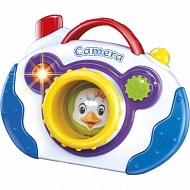 Электронная игрушка - первый фотоаппарат малыша с меняющимися картинками, вспышкой, 6 разными звуками и весёлыми мелодиями. обеспечивает комплексное развитие малыша: способствует развитию слуха, зрения и мелкой моторики.